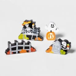 Celebrate Halloween with this spooky themed “Scaredy Cat” Set of 4 3-d Candy Plates from Certified International, designed by the artist Janelle Penner. These 4 assorted uniquely sculpted colorful candy plates are in the shape of a cat, a pumpkin, a ghost, and a skull. Perfect for serving your favorite candy and treats to your family and friends on this scary holiday. Be sure to get the matching ceramic 3-d mugs and fun accessories as well as the decal mugs, plates and platter and melamine serveware for all your trick or treaters!
