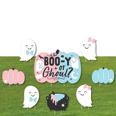 Tell everyone where the party is when you welcome them with your Boo-y or Ghoul lawn decorations. These reusable party signs are waterproof, making them perfect for any outdoor space. Displaying your Boo-y or Ghoul Halloween Gender Reveal Party Yard Signs is easy – simply insert the included stakes into the plastic yard signs and then into the lawn or courtyard to let everyone know where the party is. These decorative yard signs are perfect for short-term display but can be used again and again with proper care. **Attention: Yard sign rules and regulations vary from city and state; we recommend checking your local guidelines. ** Tips for displaying your yard signs: Arrange the shapes in your outdoor space before staking them into the ground to ensure proper placement. We provide 2 stakes per cut out and highly recommend using them to keep each piece facing your preferred direction. PERFECT FOR ANY LOCATION! Boo-y or Ghoul Yard Signs SIZE: 1 Large โBOO-Y or Ghoul?โ Pumpkin Shape 2 (23″ x 16.75″), 2 – Ghost with Blue bowtie Shape 1 (8โ x 11โ), 2 – Ghost with Pink hair bow Shape 3 (8โ x 11.5โ), 1 – Pink Pumpkin Shape 4 (11โ x 8.25โ), 1 โ Pink & Blue Cauldron Shape 5 (11โ x 9.5โ), & 1 โ Blue Pumpkin Shape 6 (11โ x 8.25โ) Cute Spooky Ghost & Pumpkin yard decor is an easy way to decorate for your Halloween Gender Reveal Party. Both adults and kids will love these Boo-y or Ghoul party supplies. EASY TO USE: Boo-y or Ghoul Yard Sign & Outdoor Lawn Decorations are professionally printed and cut, making assembly quick and easy. Simply insert two heavy-duty stakes into each Cute Spooky Ghost & Pumpkin yard ornament and press into the ground to display. HIGH-QUALITY YARD DECORATIONS: Pink & Blue Themed Yard Signs are professionally printed on durable, corrugated plastic. 8-Piece yard decorations are waterproof and can be used outdoors. Boo-y or Ghoul lawn decor can be displayed in wind, snow, and rain without any worry. MADE IN THE USA: Boo-y or Ghoul Yard Sign & Outdoor Lawn Decorations are designed and manufactured at our Wisconsin facility using materials that are Made in the USA.