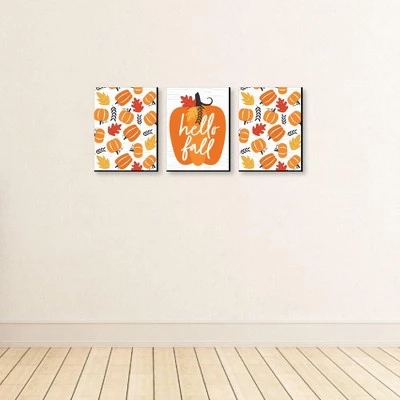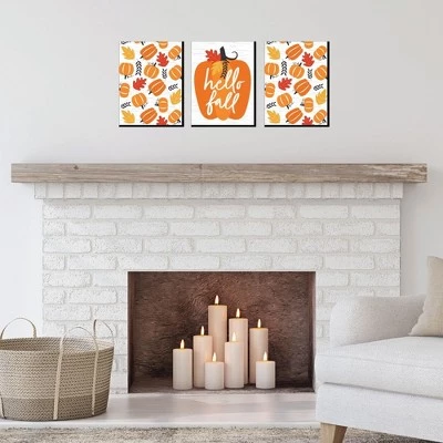 Fall Pumpkin Wall Art Set INCLUDES 3 ready-to-hang pumpkin themed panels and non-marking wall mounts for easy hanging. Fall Pumpkin artwork is perfect for home decor. Fall Pumpkin Wall Art and Home Decor SIZE each 10 inches high x 7.5 inches wide x .5 inches thick. Harvest Pumpkin lightweight art prints will arrive ready to use – no frame needed. The black edge gives each print a modern, finished look. EASY TO HANG: Simply attach a non-marking wall mount (included) to each corner of a Fall Pumpkin art panel and press to hang in desired location. Wall mounts are repositionable, so you can redesign your artwork display at any time. PREMIUM HOME DECOR: 3-piece Fall Pumpkin Wall Art Set is professionally printed on thick material with a black edge. You will not need to frame this set of Halloween or Thanksgiving room decor. Each standout print is ready to hang and will add a contemporary touch to any room. MADE IN THE USA: Fall Pumpkin Room Decor is designed and manufactured at our Wisconsin facility using materials that are Made in the USA.