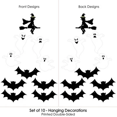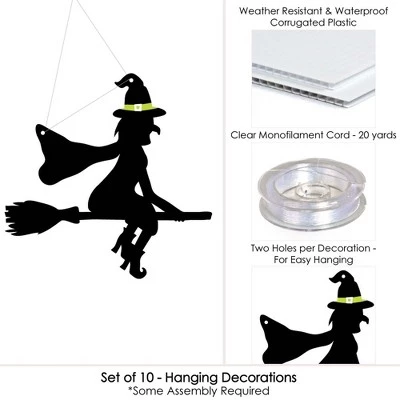 10-Piece Scary Squad hanging porch & tree yard decorations INCLUDES: 10 Witch, Bats & Ghost Halloween decorations and 20 yards of monofilament cording – perfect for festive outdoor decor. Scary Squad outdoor Halloween hanging decor is printed on both sides so they will look amazing anywhere you choose to display them. PERFECT FOR ANY LOCATION! Scary Squad outdoor yard decorations MEASURE 10.75 inches x 13.25 inches (Tall Ghost), 11 inches x 9.25 inches (Short Ghost), 15.75 inches x 8 inches (Bat) and 12.5 inches x 12.5 inches (Witch). Halloween yard decor can be hung from trees and on porches. Set of 10 Witch, Bats & Ghosts hanging decorations are also easy party decorations for indoors when hung from ceilings at school, work or home. Both adults and kids will love these Halloween party supplies. EASY TO USE: Scary Squad outdoor yard decorations are professionally printed and cut with two small holes at the top. Easily use the included 20 yd. monofilament cord to display your Halloween hanging decor at a variety of locations, indoors and outside. HIGH-QUALITY: Hanging Scary Squad outdoor Halloween decorations are professionally printed on durable, corrugated plastic. 10-Piece yard decorations are waterproof and can be used outdoors. Witch, Bats & Ghosts lawn decor can be displayed in wind, snow and rain without any worry. MADE IN THE USA: Hanging Scary Squad – Outdoor Halloween Hanging Porch & Tree Yard Decorations are designed and manufactured at our Wisconsin facility using materials that are Made in the USA.