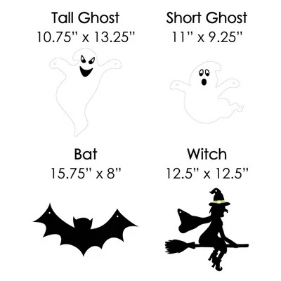 - Shapes Included: 1 – Black Witch Flying On A Broomstick, 2 – Tall Flying Ghosts, 2 – Short Flying Ghosts, and 5 – Flying Black Bats