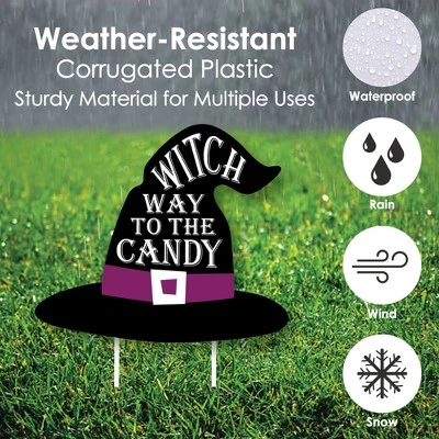 Halloween, Birthday or Bachelorette Party Lawn Decorations INCLUDES 8 coordinating Happy Halloween yard decorations: 1 Large Happy Halloween, 4 Witch Legs, 3 Witch Hats; and 16 stakes for displaying. Easy assembly instructions are also included. PERFECT FOR ANY LOCATION! Happy Halloween Yard Signs SIZE Large Happy Halloween 23″ x 16″; Witch Legs 9.25″ x 11″; Witch Hat 11.5″ x 10″. Witch yard decor is an easy way to decorate your home or business for Halloween, birthday or bachelorette party. Both adults and kids will love these witch party supplies. EASY TO USE: Witch Hat and Legs – Yard Sign & Outdoor Lawn Decorations are professionally printed and cut, making assembly quick and easy. Simply insert two heavy-duty stakes into each witch yard ornament and press into the ground to display. HIGH-QUALITY YARD DECORATIONS: Happy Halloween Yard Signs are professionally printed on durable, corrugated plastic. 8-Piece yard decorations are waterproof and can be used outdoors. Witch lawn decor can be displayed in wind, snow and rain without any worry. MADE IN THE USA: Happy Halloween – Yard Sign & Outdoor Lawn Decorations are designed and manufactured at our Wisconsin facility using materials that are Made in the USA.