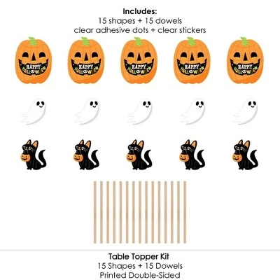 Jack-O’-Lantern Halloween Centerpiece Sticks INCLUDES 15 pumpkin truck table toppers in three different shapes, 15 wooden dowel sticks and stickers for easy assembly. Happy Halloween party table decorations are perfect for a Halloween party. Jack-O’-Lantern Halloween Centerpiece Sticks SIZE five pumpkin table toppers, 8.5″ wide x 10.75″ tall; five black cat table toppers, 6″ wide x 7″ tall; and five ghost table toppers, 5.5″ wide x 6″ tall. The unique design and variety of pieces makes this table decoration kit an impressive addition to any Halloween theme party. EASY PARTY DECOR: Jack-O’-Lantern Halloween table decorations can be used as centerpieces when attached to the included dowels and inserted into vases or floral arrangements. They easily accent your Halloween party candy buffet when you add them to apothecary jars. Table toppers are also a great addition to any photo booth. The large shaped cut outs will make your party pics instantly shareable. Jack-O’-Lantern Halloween centerpiece sticks are sure to make a statement however you choose! PREMIUM PARTY SUPPLIES: Jack-O’-Lantern Halloween table toppers are professionally printed on heavy-duty cardstock paper with a photo-like shine. They are individually inspected and carefully packaged by hand with wooden dowels and stickers for easy assembly. Get creative with your DIY party ideas! MADE IN THE USA: Jack-O’-Lantern Halloween – Halloween Party Centerpiece Sticks are designed and manufactured at our Wisconsin facility using materials that are Made in America.