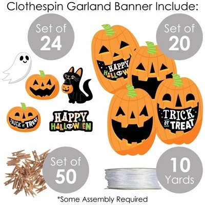 Clothespin Garland Banner – 44 Pieces INCLUDE: 24 small shaped cut-outs, 20 large shaped cut-outs, 50 mini clothespins, and 10 yards white 2mm satin cord. Some simple assembly required. DIY PARTY SUPPLIES: Jack-O’-Lantern Halloween small paper shaped cut-out SIZE 6 pumpkin paper die cuts (2.75″ X 2.25″); 6 ghost paper die cuts (2.25″ x 2.5″); 6 Happy Halloween paper die cuts (3.5″ x 7.5″); 6 black cat paper die cuts (2.5″ x 3″). Jack-O’-Lantern Halloween large paper shaped cut-outs SIZE 20 Pumpkin shapes (5″ x 7″). EASY PARTY DECOR: Style any Halloween party with Jack-O’-Lantern Halloween clothespin garland banner. Before hanging, plan out your desired pattern by alternating in sizes. Using a miniature clothespin, clip shapes on the included cord. Hang finished DIY garland banner at the entrance of your party, over mantelpiece, along buffet tables as banner decoration. After the party, reuse the clothespins and cord to hang event photos as a fun keepsake. PREMIUM PARTY DECORATION: Jack-O’-Lantern Halloween large cut-outs are professionally printed double-sided. Small cut-outs are professionally printed with coordinating pattern on back, and all on sturdy cardstock paper with a photo-like shine. They are then individually cut, inspected and carefully packaged. Jack-O’-Lantern Halloween clothespin garland banner is a 44-piece DIY kit that can be used in many ways. Get inspired with this fun do-it-yourself Halloween party decor kit! MADE IN THE USA: Jack-O’-Lantern Halloween clothespin garland banner decoration kit is designed and manufactured at our Wisconsin facility using materials that are Made in the USA.