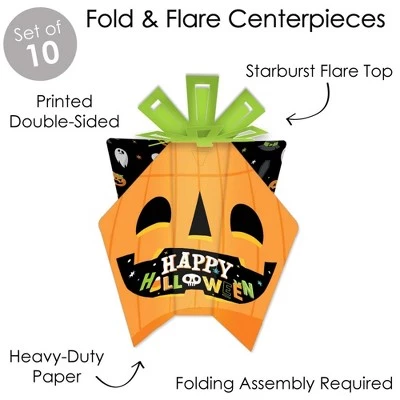 Jack-O’-Lantern Halloween Fold and Flare Centerpieces INCLUDE: 10 heavy-duty paper centerpieces in our Jack-O’-Lantern Halloween theme. Each centerpiece has art on all four sides and starburst top for an impressive display. Some simple folding assembly required. EASY TABLE DECOR: Each Jack-O’-Lantern Halloween centerpiece SIZE 5 inches wide (front/back) x 3 inches wide (sides) x 10.5 inches tall. This 10 count table decorations set requires easy folding to flare out each centerpiece at your desired look. Easy DIY folding assembly: Use a flat surface to fold along the scored creases to stand the centerpiece upright and be able to balance on its own. PARTY CENTERPIECES: Style your Halloween party with Jack-O’-Lantern Halloween table centerpiece decorations. Place in the center of multiple tables or add to all areas of the party such as welcome entrance, gift table, or dessert buffet for an extra flair. HIGH-QUALITY PARTY SUPPLIES: Jack-O’-Lantern Halloween fold and flare centerpieces are professionally printed double-sided on sturdy cardstock paper with a photo-like shine. They are individually inspected and carefully packaged by hand. Fold and flare centerpieces will arrive flat, with easy folding required for quick assembly. MADE IN THE USA: Jack-O’-Lantern Halloween fold and flare centerpieces are designed and manufactured at our Wisconsin facility using materials that are Made in the USA.