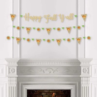 Pumpkin Patch Letter Banner Decoration INCLUDES Happy Fall Yall letters, 36 banner pennant pieces and cord for hanging. Happy Fall Yall banner look great at any venue! VARIETY OF DESIGNS & SIZES! Pumpkin Patch Letter Banner features coordinating pennant pieces and script letters. Decorate your event with 9 large triangle pennants (6.25″ x 7.5″); 9 circle pennants (3.75″ x 3.75″); 18 small triangle pennants (3.25″ x 2″); and no-mess real glitter Pumpkin Patch letters in script style lettering. Easily string them together with the included 10 yards of satin cording. FALL & THANKSGIVING PARTY DECORATIONS: A Pumpkin Patch Bunting Banner is an easy way to decorate for your party and bring your fall theme to life. Hang at the entrance of your fall or Halloween, over the food table or candy buffet, and even by the gift table. PREMIUM FALL SUPPLIES: Pumpkin Patch Letter Banner is professionally printed on sturdy cardstock paper. Each pennant is individually inspected then carefully packaged by hand. Pumpkin Patch letter banners requires some easy assembly. Simply string the cord through the holes on each letter piece and add triangle and circle pennants to complete the banner. Create multiple rows by cutting the cord to your desired length or hang as one long banner. Pumpkin Patch – Fall, Halloween orThanksgiving Letter Banner Decoration Pennants Use A No-Mess Glitter Print: Our pennant pieces are designed with a printed image of glitter, eliminating glitter flake while maximizing bling effect!