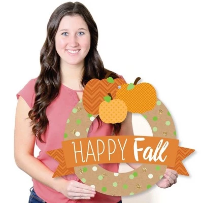 Pumpkin Patch Wreath INCLUDES 1 base piece, 1 shaped top piece, and satin ribbon for hanging. Requires some easy assembly. This fall, Halloween, or Thanksgiving party wreath is an attractive way to welcome everyone to your home in style! DOOR-PERFECT: Pumpkin Patch Wreath is SIZE 22.5 inches wide x 19 inches high. Made of sturdy PVC Material with single-sided print, this decorative wreath is a spectacular accent to any front door—at home or at work! Waterproof and weather resistant, hang on your outside door and reuse again and again. EASY ASSEMBLY: Pumpkin Patch Wreath requires some easy assembly. String ribbon through top piece and base piece, pulling ribbon through to secure pieces together. Tie ribbon ends and hang. Holes are pre-cut for your convenience. HIGH-QUALITY DECOR: Pumpkin Patch Wreaths are professionally printed on sturdy PVC Material with single-sided print. They are individually inspected and carefully packaged by hand with coordinating ribbon. CARE TIP: For best results, display your Front Door Decor in temperatures no higher than 130 degrees Fahrenheit and hang on outermost door as placing between two doors risks exposure to excessive heat. MADE IN THE USA: Pumpkin Patch Wreaths are designed and manufactured at our Wisconsin facility using materials that are Made in the USA. Pumpkin Patch Wreaths use a No-Mess Glitter Print: Our Wreaths are designed with a printed image of glitter, eliminating glitter flake while maximizing bling effect!