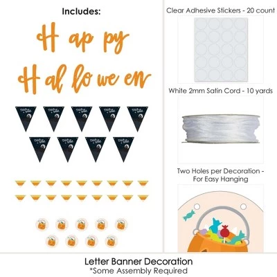 Trick or Treat Letter Banner Decoration INCLUDES Happy Halloween letters, 36 banner pennant pieces, and cord for hanging. Happy Halloween banner look great at any venue! VARIETY OF DESIGNS & SIZES! Happy Halloween Letter Banner features coordinating pennant pieces and script letters. Decorate your event with 9 large triangle pennants (6.25″ x 7.5″); 9 circle pennants (3.75″ x 3.75″); 18 small triangle pennants (3.25″ x 2″); and Halloween letters in script style lettering. Easily string them together with the included 10 yards of satin cording. HALLOWEEN DECORATIONS: A Happy Halloween Bunting Banner is an easy way to decorate for your party and bring your trick or treat theme to life. Hang at the entrance of your Halloween, over the food table or candy buffet, and even by the gift table. PREMIUM HALLOWEEN SUPPLIES: Happy Halloween Letter Banner is professionally printed on sturdy cardstock paper. Each pennant is individually inspected then carefully packaged by hand. Halloween letter banners require some easy assembly. Simply string the cord through the holes on each letter piece and add triangle and circle pennants to complete the banner. Create multiple rows by cutting the cord to your desired length or hang as one long banner. MADE IN THE USA: Happy Halloween – Witch Party Letter Banner Decoration is designed and manufactured at our Wisconsin facility.