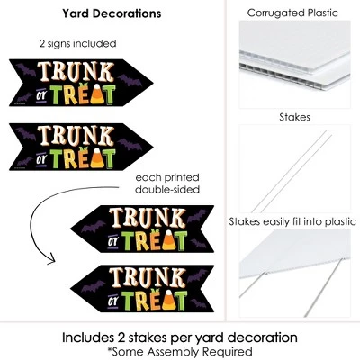 Trunk or Treat Halloween Signs Lawn Decorations INCLUDES 2 coordinating arrow yard decorations and 4 stakes for displaying. Easy assembly instructions are also included. PERFECT FOR ANY LOCATION! Trunk or Treat Halloween Party Signs Yard Signs SIZE: Arrows measure 23 inches x 7.5 inches. Car Parade arrow yard decor is an easy way to direct guests to the party at your site. Guests will love these stylish Trunk or Treat – Halloween Party Signs party supplies. EASY TO USE: Trunk or Treat Halloween Party Signs are professionally printed and cut, making assembly quick and easy. Simply insert two heavy-duty stakes into each arrow yard ornament and press into the ground to display. HIGH-QUALITY YARD DECORATIONS: Trunk or Treat Halloween Party Signs are professionally printed on durable, corrugated plastic. 2-Piece yard decorations are waterproof and can be used outdoors. Community trunk or treat arrow lawn decor can be displayed in wind, snow and rain without any worry. MADE IN THE USA: Trunk or Treat Sign Arrow – Double Sided Directional Yard Signs – Set of 2 Halloween Signs are designed and manufactured at our Wisconsin facility using materials that are Made in the USA.