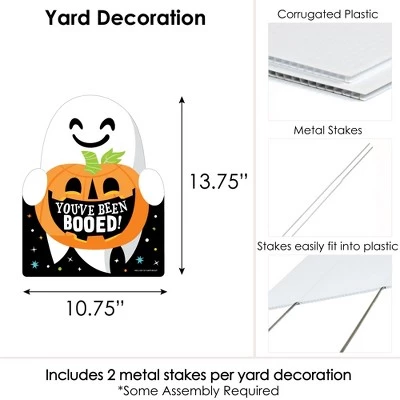 You’ve Been Booed Yard Sign INCLUDES: 1 weather resistant plastic sign and 2 sturdy stakes for displaying. Show off to neighbors and pedestrians when you add this eye-catching sign to your property. PERFECT FOR ANY LOCATION! This 1-piece yard sign SIZE 10.75 inches wide x 13.75 inches tall is the ideal height to display in the front yard of your home. If displayed outdoors, yard sign rules and regulations vary from city and state, we recommend checking your local guidelines. EASY TO USE: Cute Spooky Ghost Lawn Sign is professionally printed and cut, making assembly quick and easy. Simply insert the included two heavy-duty stakes into the sign and press into the ground to display. HIGH-QUALITY YARD DECORATION: You’ve Been Booed Yard Sign is professionally printed on durable, corrugated plastic. Ghost Halloween Party yard sign is waterproof and can be used outdoors – displayed in wind, snow, and rain without any worry. MADE IN THE USA: Cute Spooky Ghost Yard Sign is designed and manufactured at our Wisconsin facility using materials that are Made in the USA.