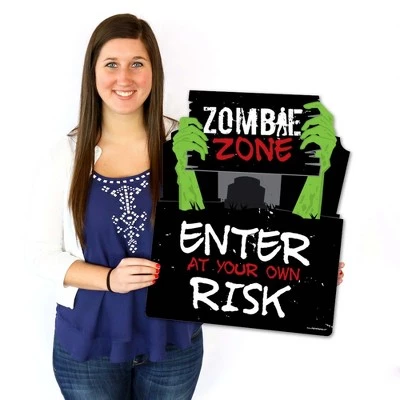 - Sign Reads: “Zombie Zone” and “Enter At Your Own Risk”