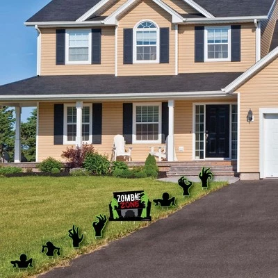 Halloween or Birthday Zombie Crawl Party Lawn Decorations INCLUDES 8 coordinating Zombie Zone yard decorations: 1 Large Zombie Zone, 1 Zombie 2, 2 Zombie 1, 2 Large Hand, 2 Small Hand; and 16 stakes for displaying. Easy assembly instructions are also included. PERFECT FOR ANY LOCATION! Zombie Zone Yard Signs SIZE Large Zombie Zone 23″ x 16.5″; Zombie 1 – 12.75″ x 8.25″; Zombie 2 – 10.75″ x 8.5″; Large Hand 8.5″ x 13″; Small Hand 8″ x 11″. Zombie crawl yard decor is an easy way to decorate your home or business for Halloween or birthday zombie crawl party. Both adults and kids will love these zombie theme party supplies. EASY TO USE: Zombies – Yard Sign & Outdoor Lawn Decorations are professionally printed and cut, making assembly quick and easy. Simply insert two heavy-duty stakes into each walking dead yard ornament and press into the ground to display. HIGH-QUALITY YARD DECORATIONS: Zombie Zone Yard Signs are professionally printed on durable, corrugated plastic. 8-Piece yard decorations are waterproof and can be used outdoors. A mad zombie lawn decor can be displayed in wind, snow and rain without any worry. MADE IN THE USA: Zombie Zone – Yard Sign & Outdoor Lawn Decorations are designed and manufactured at our Wisconsin facility using materials that are Made in the USA.