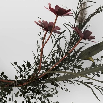 Update your year-round indoor decorations with this Cosmos Ring Wreath from Threshold™ . This round ring wreath makes a great decorative accessory. It features faux blooms of cosmos along with greenery for a lovely natural-themed look. The artificial wreath has a lightweight construction with a top loop detail for easy display. Hang it above your fireplace or on the living room wall or door for a welcoming vibe.