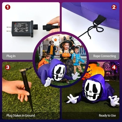 The patterns of the ghost is relatively delicate and the height is fairly realistic, both of which make the decoration look like a real ghost. Plus, the material is very durable and waterproof that will save you much effort for cleaning. What’s more, there is powerful blower inside helping you finish inflation quickly. Unlike normal Halloween decoration, our inflatable ghost has built-in LED lights and at night you will see a totally different inflatable ghost.