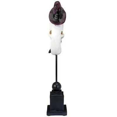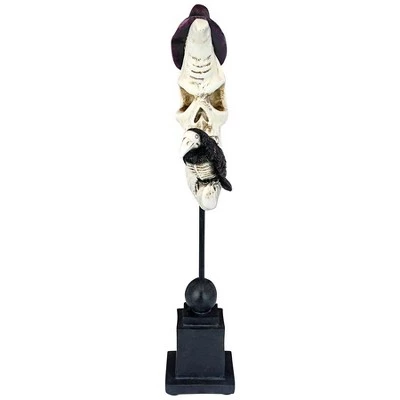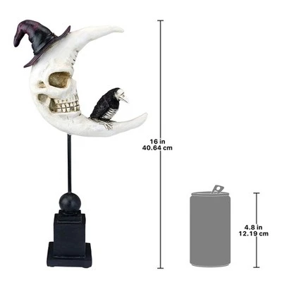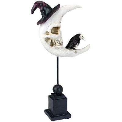 From his black witch hat and spooky sunken eyes to his jumpy jack-o-lantern smile and creepy crescent moon chin, this devilish midnight moon sculpture is the perfect Halloween haunt! Add a wise old crow and balance it atop an ebony museum mount to create the perfect centerpiece for any hellish holiday arrangement. Creatively sculpted in quality designer resin exclusively for Design Toscano, this sculpture is hauntingly hand painted in horror house hues. Makes a macabre Gothic gift for yourself or your favorite Halloween host! 9″Wx3″Dx16″H. 3 lbs.