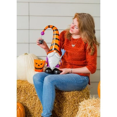 - This charming gnome is dressed as a warlock and features plenty of fun Halloween accents including a dangling spider, ghost, and jack-o-lantern planter.