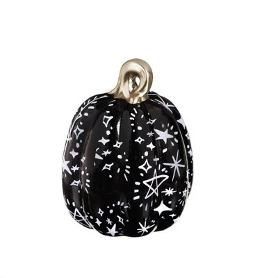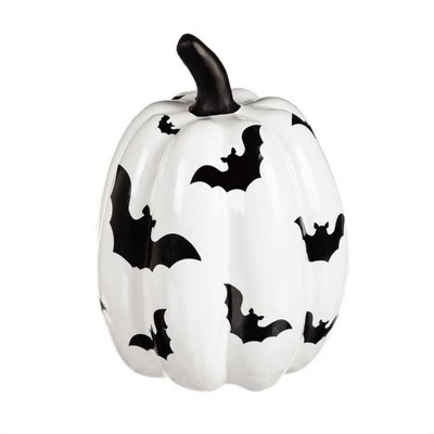 Set Of Three Rustic Ceramic Pumpkins In Different Sizes. White Pumpkin Has Black Bats In Various Sizes, Black Pumpkin Has White Stars And Designs And The Small Orange Pumpkin Has Black Swirls. The Three Pumpkins Come In Different Sizes And Feature Different Patterns That Create An Elegant Yet Spooky Feel.. New.. Measurements 8.75 In H X 6.5 In W X 6.5 In D. . Made Of Ceramic. No Assembly Required. Indoor Use Only. Imported. NOTE: Not A Toy, For Decorative Use Only.