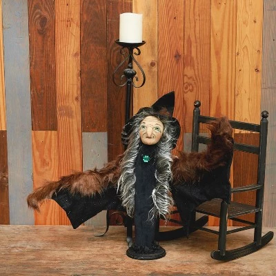 When vampire bats swoop through the night, werewolves howl at the moon, and witches cackle over potions, it must be Halloween. With handcrafted changeling fur, sparkling bat wings, and long grey hair, Evangeline creates an uncanny and imposing figure to enliven your magical witch display or your Halloween decor. Size: 24 inches high x 27 inches wide x 5 inches deep Each soft figure displays a hand-painted face, making each doll uniquely yours This soft figure is not a toy, not suitable for children under 14 years old.