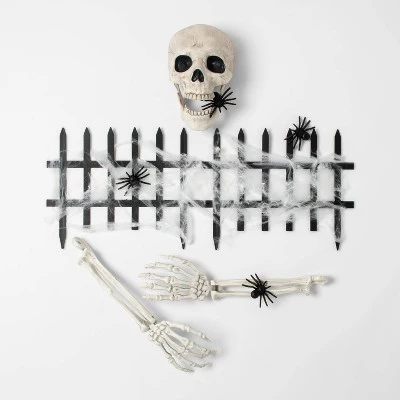 - Includes a skull, fence, hand skeleton and more for haunted appeal