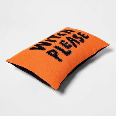 - Lumbar throw pillow with cheeky “Witch Please” message