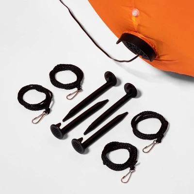 Welcome guests to your Halloween party as well as trick-or-treaters to your door with the LED “Boo” with Pumpkins Inflatable Halloween Decoration from Hyde & EEK! Boutiqueâ„¢. This polyester indoor/outdoor decoration features a bony letter “B” and two round carved pumpkins that spell out “BOO” in orange, black and white hues. Illuminated with a constant LED lighting effect, they’ll see your decor from dusk until dawn. This decoration includes everything you need for setup right out of the box — no batteries required!