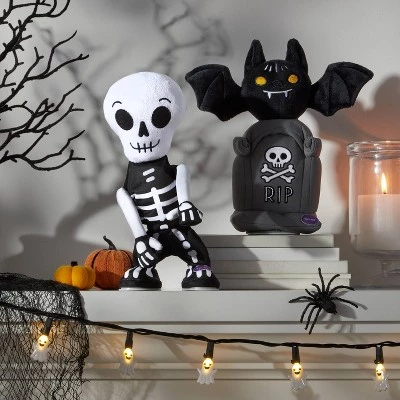 Welcome trick-or-treaters to your home WITH this Animated Dancing Plush Skeleton Halloween Decorative Scene Prop from Hyde & EEK! Boutique™. Made from plush fabric, this fun decorative prop showcases a smiling white skeleton that dances animatedly thanks to the three included AAA batteries. Designed for indoor use, this boogie-woogie spooky skeleton is sure to dance through the night and enliven your seasonal display.