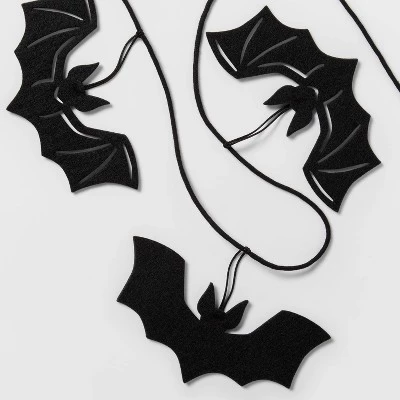 Put the perfect finishing touch on your Halloween decor with this Bats Halloween Felt Garland from Hyde & EEK! Boutiqueâ„¢. Featuring black bats on a string for a spooky touch, this decorative garland hangs horizontally and measures 72 inches long. Arrange it along a wall or over your mantelpiece with other Halloween-themed decor to help family and guests get into the spirit of the holiday.