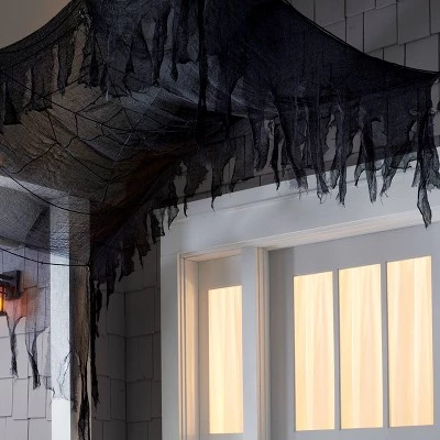 Create a haunted Halloween scene with the Halloween Ceiling Tapestry from Hyde & EEK! Boutique™. This black ceiling prop features spooky spiderweb detailing to create a thrilling effect, and the black spider accents add to the frightening feel. Plus, it’s made from a lightweight gauze fabric that is easy to hang and shape. Drape it over the living room chandelier or entrance door to welcome your guests or trick-or treaters in creepy style.