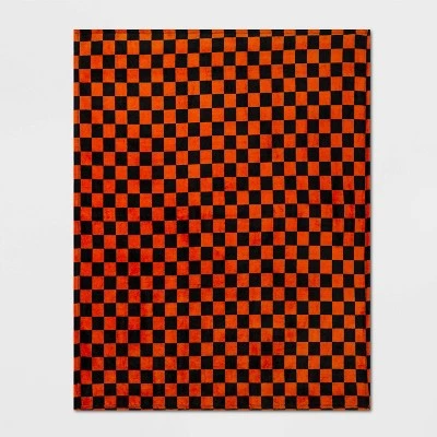 Keep things lively for fall with the Check Printed Plush Throw Blanket in Black/Orange from Hyde & EEK! Boutiqueâ„¢. Featuring a lightweight fabric construction, this orange-and-black check print throw blanket is made of a soft fabric with a plush knitted texture for comfy appeal. Drape it over the back of a sofa or chair in your living room, and pair it with a coordinating Halloween throw pillow for a fun look.