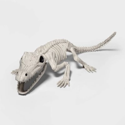 Add a unique and delightfully creepy touch to your Halloween display with the Crocodile Skeleton Halloween Decorative Scene Prop from Hyde & EEK! Boutique. Made from textured plastic to look like real bones, this crocodile skeleton prop can be used as a solo accent piece or paired with other skeletal decorations to form a cohesive scene. Suitable for both indoor and outdoor use, you can try placing it on your lawn or porch to welcome trick-or-treaters.