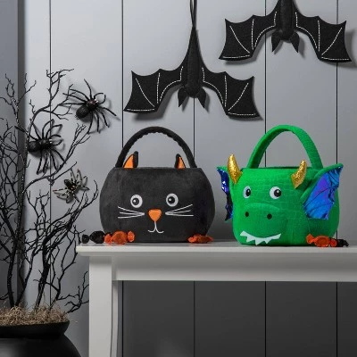 Your kid will have a blast on Halloween night carrying this Dragon Plush Halloween Trick-or-Treat Pail from Hyde & EEK! Boutique™. Made from plush fabric in a green hue, this dragon candy pail features a cute face, purple wings and gold horns. Designed with a top handle for easy carrying, it’s sure to help your kid gather more candy than any of the past years.