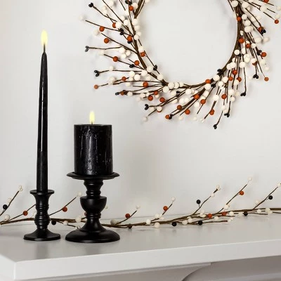 For a spooky-season take on the classic berry wreath, get this Harvest Berry Cream Wreath from Hyde & EEK! Boutique™. This grapevine-style wreath features black, orange and cream faux berries for Halloween-themed style. The circular wreath is meant for indoor display and will look great hung on a wall as a backdrop to your favorite fall display.