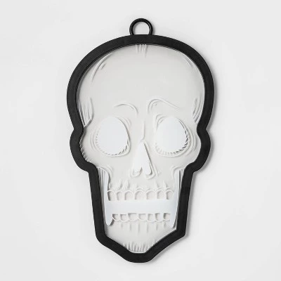 Amp up the fright factor with the Skull Acrylic Halloween Lighted Sign from Hyde & EEK! Boutique™. Glowing in white with a black border, this acrylic lighted sign makes a cool addition to your Halloween decor. It features a skull shape and is made of 28 durable, long-lasting LED lights. You can easily hang it anywhere indoors or outdoors using the attached hanging ring to create a spooky-fun ambiance for Halloween parties, haunted houses or trick-or-treating.