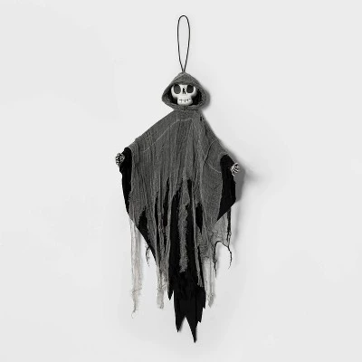 If you like your Halloween decorations on the creepier side, you’ll love this Lit Ghoul Skeleton Halloween Decorative Mannequin from Hyde & EEK! Boutique™. Designed with a frayed gray fabric robe and a white skull face with glowing red eyes, the mannequin is sure to add a scary touch to your Halloween decor. Designed for indoor and sheltered outdoor use, it can be displayed on your front porch or in your living room or entryway, and the attached top loop makes hanging this ghoul a breeze.