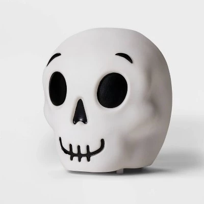 Complete your frighteningly festive display with the Warbler Skull Halloween Decorative Scene Prop from Hyde & EEK! Boutiqueâ„¢. This spooky-fun decorative skull prop with large black eyes and a sinister smile lights up and glows with the help of the included 3 AAA batteries. Designed for indoor use, this skull prop works as either a solo accent piece or part of a larger seasonal display.
