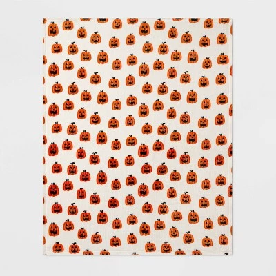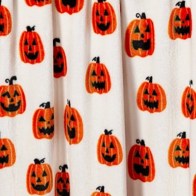 Add a fun, festive look to your home with the Pumpkin Printed Plush Throw Blanket in Ivory/Orange from Hyde & EEK! Boutique™. Featuring a lightweight fabric construction, this smiling pumpkin-print blanket is made of a soft fabric with a plush knitted texture for comfy appeal. Drape it over the back of a sofa or chair in your living room, and pair it with a coordinating Halloween throw pillow for a fun look.