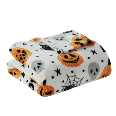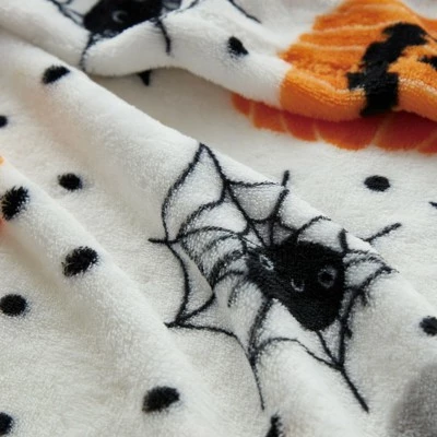 Kate Aurora Halloween BOO! Pumpkins & Spiders Ultra Soft & Plush Oversized Accent Throw Blanket – White
