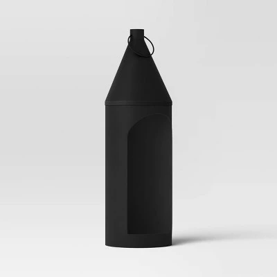 Light up your haunted scene with this Black Large Mild Steel Lantern from Threshold™. This large iron lantern makes a great tabletop accent. It features a solid black smooth finish to go well with any of your spooky settings. This decorative lantern is designed with a cutout at front to easily fit a single pillar candle. Set this piece with other Halloween props and accents atop your fireplace mantel, entryway console or sideboard to light up your space.