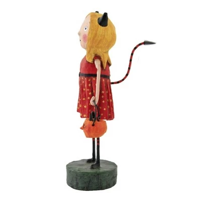 Celebrate Halloween With The Blonde “She Devil” Dressed In A Red Dress With A Black Belt. Skirt Of Dress Has Gold Dots. She Holds A Devil Jack-O-Lantern In Her Left Hand And A Gold Pitch Fork In Her Right. Black Shoes And Black Socks With Red And Black Stripes At The Top.. New. Comes Packaged In A Box.. Measurements 6 In H X 4 In W X 3 In D. . Made Of Resin. No Assembly Required. Indoor Use Only. Imported. NOTE: Not A Toy, For Decorative Use Only.