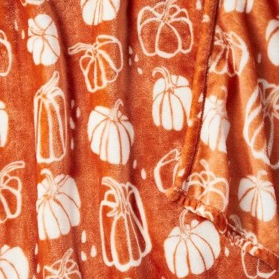 Whether snuggling next to a bonfire or curling up on the couch for a fall movie, stay cozy with this Pumpkin Printed Plush Throw Blanket from Spritzâ˘. Made from a soft, lightweight fabric, this plush throw blanket helps keep you warm and cozy while feeling oh-so-soft to snuggle. This plush blanket features an allover pumpkin print, bringing texture and a touch of festive appeal to your decor. Simply throw this plush blanket over the back of a chair or sofa for convenient comfort whenever you need it.
