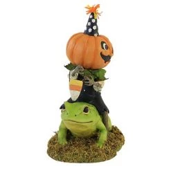 Bethany Lowe Designs Halloween 8.0″ Tricky Beau Riding Frog Jack-O-Lantern – Decorative Figurines