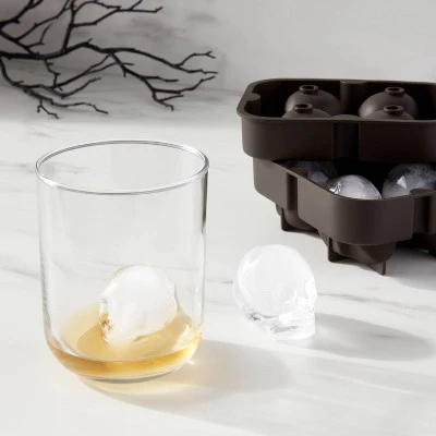 Make spooktacular ice-cube shapes with this Silicone Skull Ice Mold from Thresholdâ˘. This black ice mold features four skull-shaped ice-cube cavities for a perfect Halloween-themed look. The flexible silicone material makes it easier to release the ice cubes with no breakage. Plus, it’s dishwasher safe for easy cleanup. Add them to your favorite drinks to lend a fun vibe to your party celebrations.