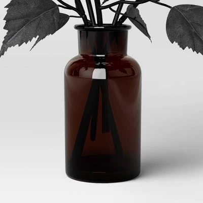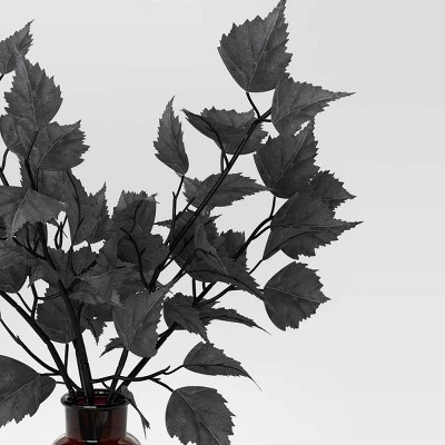 Get into the holiday spirit by decorating your home with this Small Leaves Arrangement Artificial Plant from Threshold™. This artificial potted plant with black leaves to create a cool vibe in your space, and it comes potted inside a glass container for easy display on any flat surface. The artificial construction requires no maintenance, and it looks pretty whether displayed solo or along with other plants. Simply place this artificial potted arrangement on a coffee table, windowsill or any other spot for a decorative look while flaunting your love for nature.