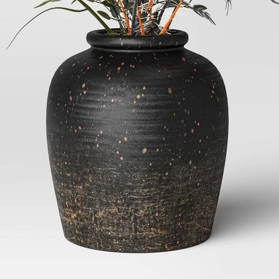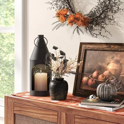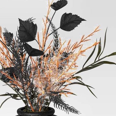 Lend a fun twist to your fall seasonal decor with this Small Mixed Grass and Leaf Arrangement Artificial Plant from Thresholdâ˘. The artificial potted plant features grass and leaves arranged together to offer a cool vibe to your home decorations, and comes potted inside a black matte ceramic container with distressed finish for quick and easy display on any flat surface. This artificial plant stays beautiful at all times without the hassle and worry of maintenance. Place it on the entryway console, mantel or office table to for welcoming appeal.