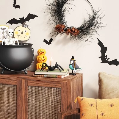 Bring a spooky finish to your Halloween decor with this Spider Tealight Candleholder from Threshold™. Shaped as a black spider with creepy long legs, this metal tealight candleholder makes a perfect addition to your Halloween decor. Simply add a tealight candle in the cavity on top and let it cast an eerie glow on the mantel, console table or any tabletop it’s placed on.