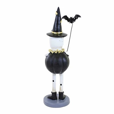 Wonderful Figurine With A Pumpkin Body And Wearing A Pointed Black Witches Hat Accented With A Gold Band.. New. Comes Packaged In A Box.. Measurements 10.5 In H X 3. In W X 3. In D. . Made Of Polyresin. No Assembly Required. Indoor Use Only. Imported