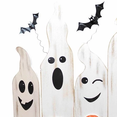Fun Folding Screen Consisting Of Five Wooden Ghost With Different Facial Expressions.. New. Comes Packaged In A Box.. Measurements 24.75 In H X 9.5 In W X .5 In D. . Made Of Wood. Assembly Required, No Tools Needed. Indoor Use Only. Imported