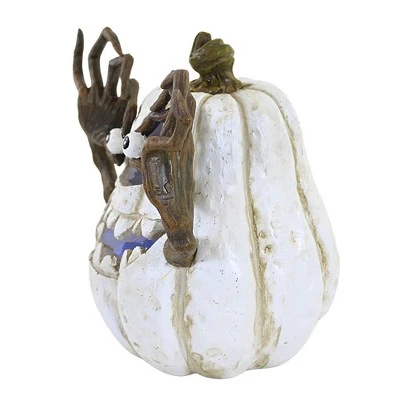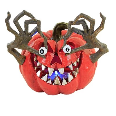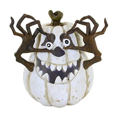 Fun Carved Pumpkin Embellished With Jazzed White Teeth And Eyeball Held In The Brown Tree Limb Arms.. New.. Measurements 6.25 In H X 8.0 In W X 6.0 In D. . Made Of Polyresin. No Assembly Required. Indoor Use Only. Imported