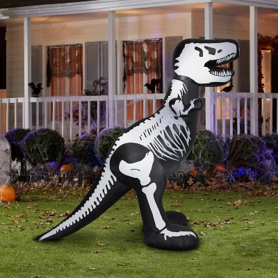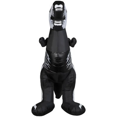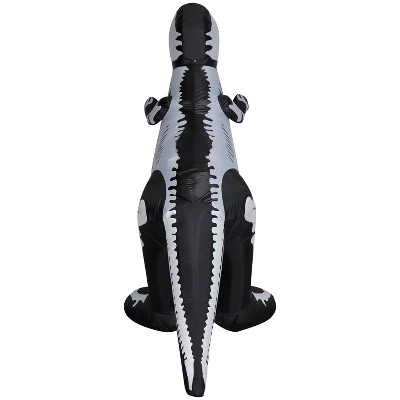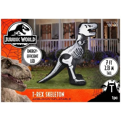 Celebrate the season and impress your friends and neighbors with this 7 ft Jurassic World Inflatable T-Rex! This dinosaur inflatable makes an eye-catching addition to your outdoor holiday decorations. Setup is super simple. Just plug it in, stake it down and watch the magic unfold. Display this inflatable T-Rex as a standalone or combine it with other inflatable characters to create a custom scene. Includes everything needed for easy outdoor setup.
